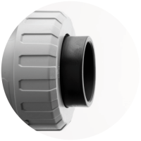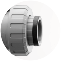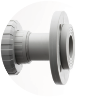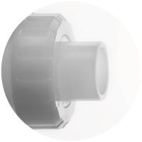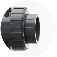 Vaste flens in PVC-U, schroefdraad in PVC-U, PP-H of PVDF, lijmaansluiting in PVC-U, lijmaansluiting-spie in PVC-U, steunflens in PVC-U of PP-glasvezel versterkt met stalen inzet, las mof in PP-H, PVDF of PE-HD, las-spie in PP-H, PVDF of PE-HD.